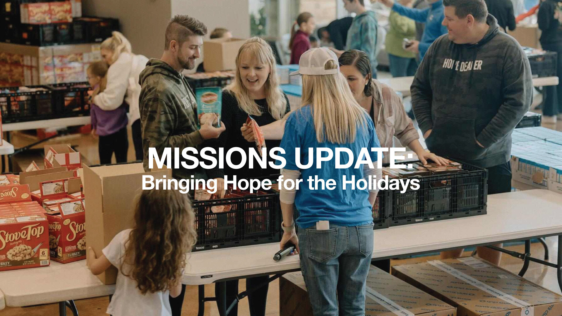 - Turkey Drive: Last year, over 150 volunteers from WoodsEdge delivered 750 turkey and food boxes to three different apartment communities in Greenspoint. This year we're expanding to a fourth apartment to bring the hope and love of Christ to more Greenspoint residents. We need help at each location with set-up, turkey and food box distribution, prayer ministry, games, hospitality, and teardown.