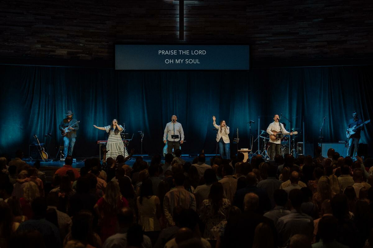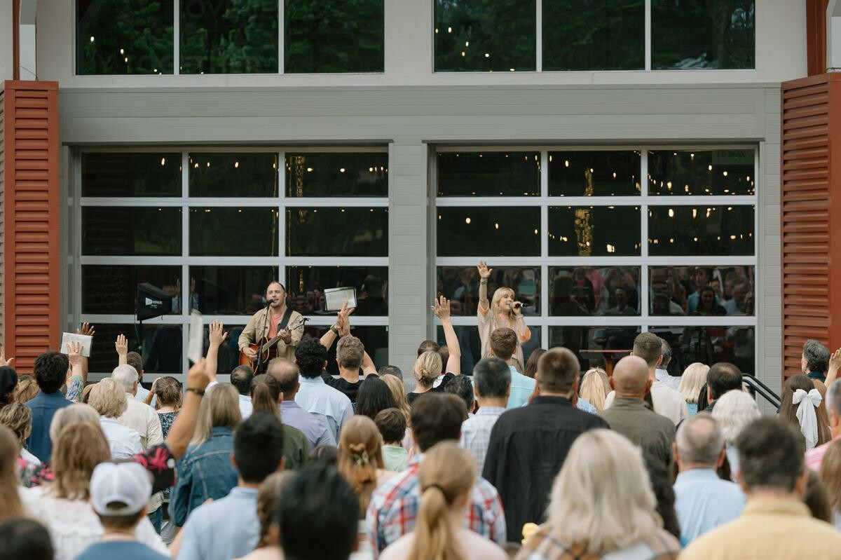 Our largest venue. Enter via the south entrance or take the left fork from the north entrance. Services in English on Saturday at 5:00 p.m. and on Sunday at 8:30, 10:00, and 11:30 a.m. Worship led by a band and vocalists.