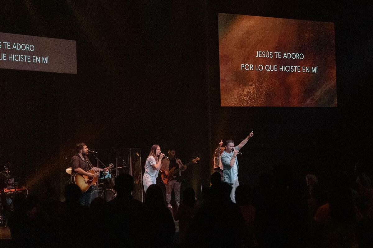 A smaller, more intimate space. Enter via the north entrance and take the right fork. Services in English on Sunday at 8:30, 10:00, and 11:30 a.m, with Pastor Jeff's sermon via video. Service in Spanish at 1:30 p.m. Worship led by a band and vocalists.